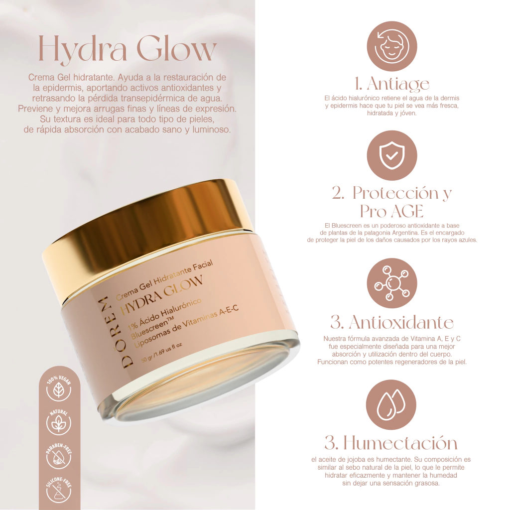 IMPORTANTE: Debido a la gran demanda de pedidos, estamos teniendo demoras en la entrega de este producto ( HYDRA GLOW) por ende, este pedido puede estar unos días demorados. Agradecemos su comprensión.
